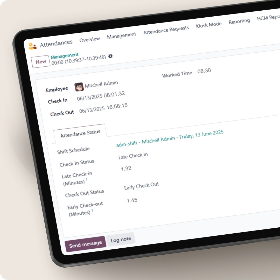 Pantau attendance seluruh perusahaan, input manual bila diperlukan, atur policy dan integrasi biometric/GPS, buat laporan custom, dan lacak semua perubahan lewat audit trail