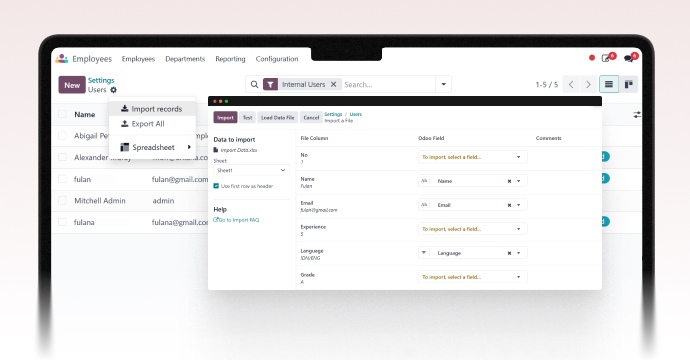 Impor data karyawan dari Excel/CSV lewat template siap pakai, ekspor data untuk kebutuhan reporting, dan lakukan bulk update untuk perubahan massal, semua cepat dan tanpa ribet