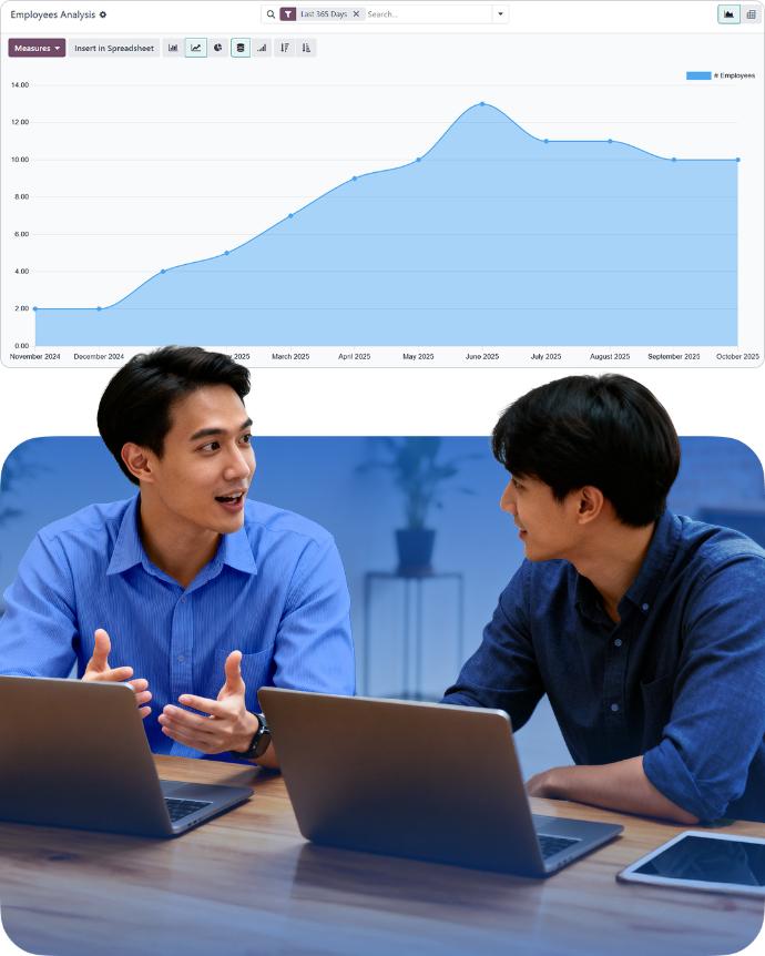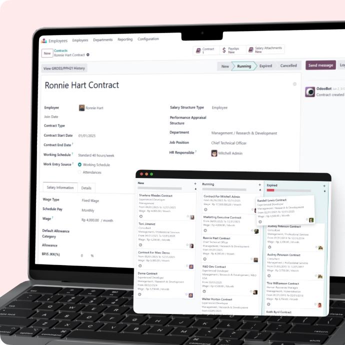 Dari 50 hingga 5.000+ karyawan, Anda bisa menambah custom fields dan memperluas modul sesuai pertumbuhan tanpa perlu ganti sistem