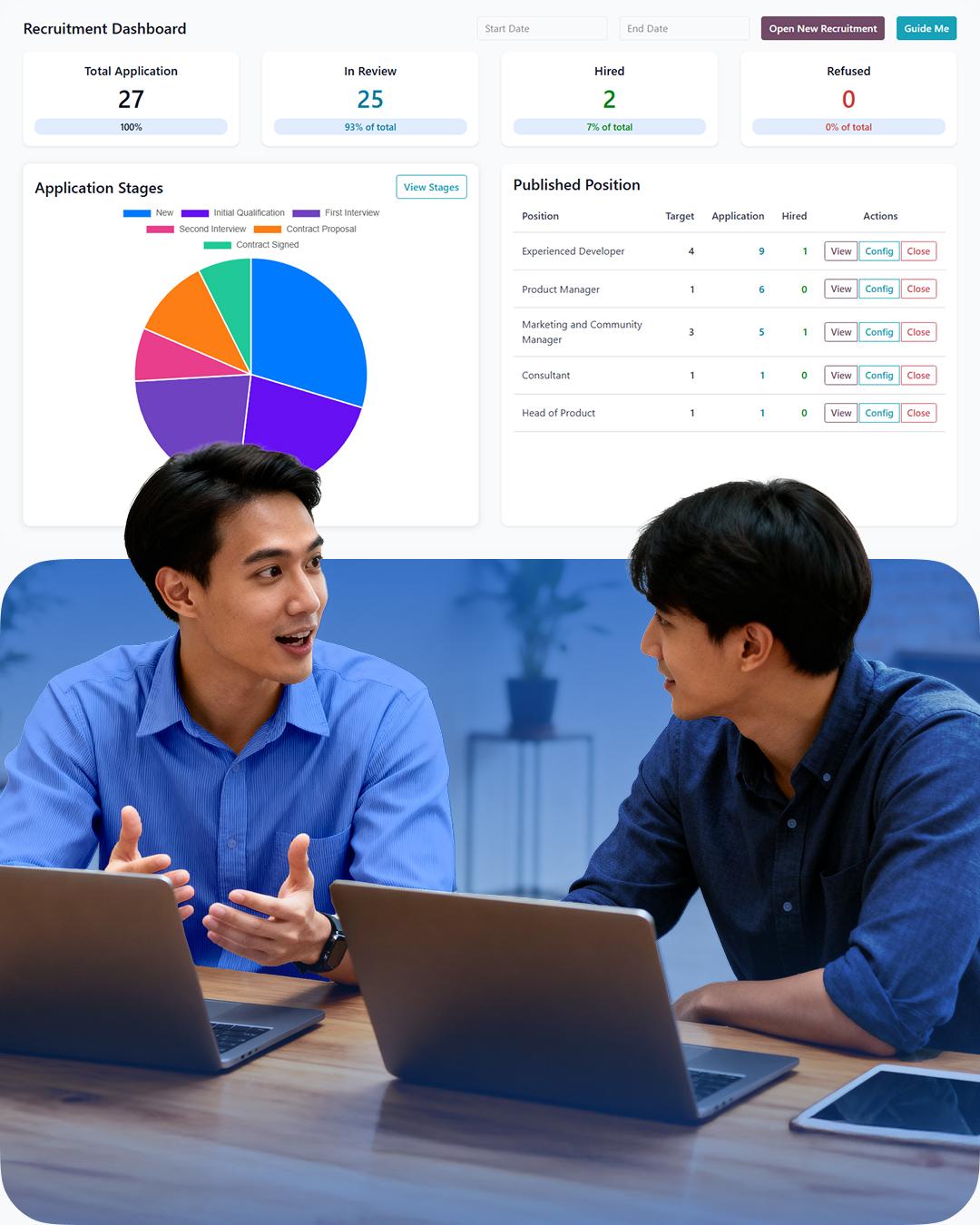Lebih cepat dapatkan kandidat terbaik, dengan proses rekrutmen yang lebih efisien dan terintegrasi.